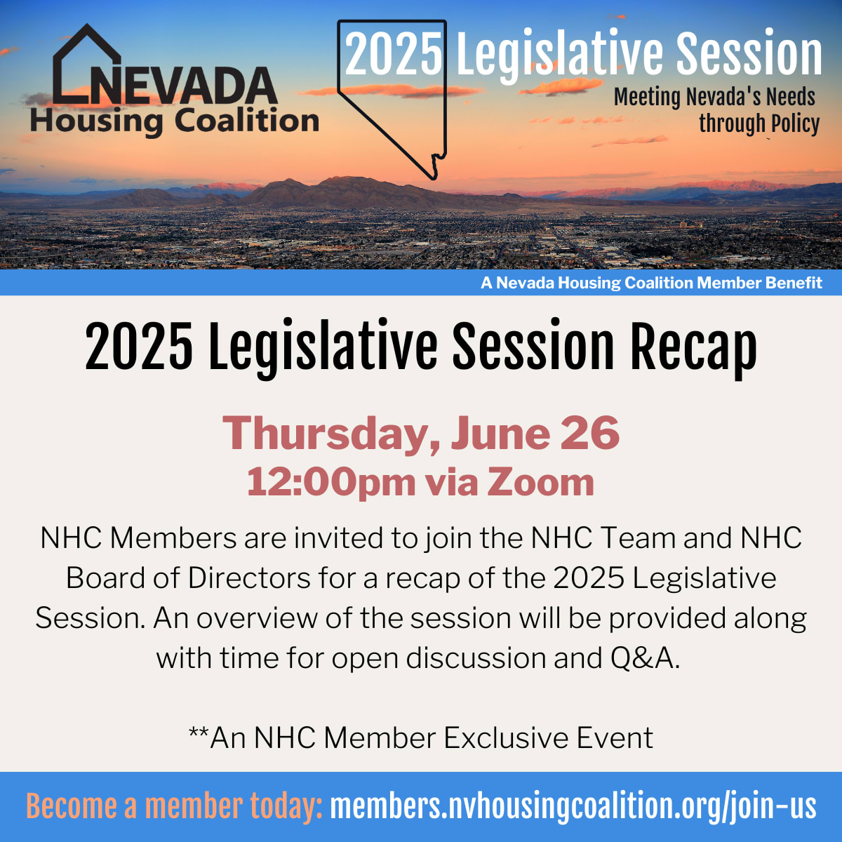 NHC Members are invited to join the NHC Team and NHC Board of Directors for a recap of the 2025 Legislative Session. An overview of the session will be provided along with time for open discussion and Q&A.